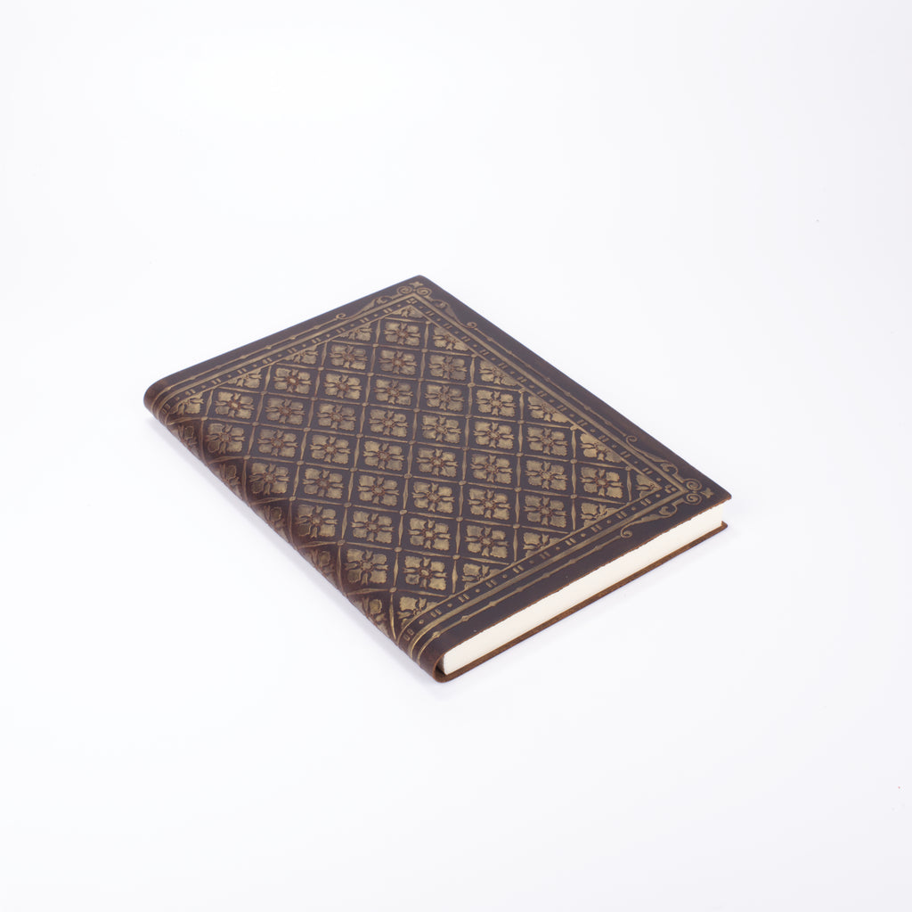 Calling to mind the elegance and style of Florence, our original Capponi journal was embossed with a delightful diamond floral pattern. We decided a reminder of the glitz and glamour of the 1920s would be timely, so we added gold gilding and the Naila journal was born.