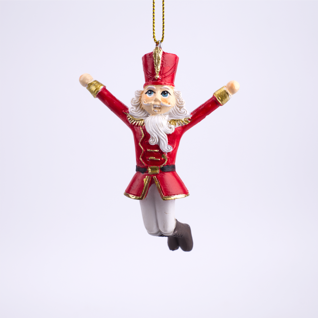 This colourful hanging Christmas Nutcracker is a lively and cheerful ornament for your tree, mantelpiece or window. The way that the figure is precariously hanging from one arm reminds us that nutcrackers were originally a form of political satire.