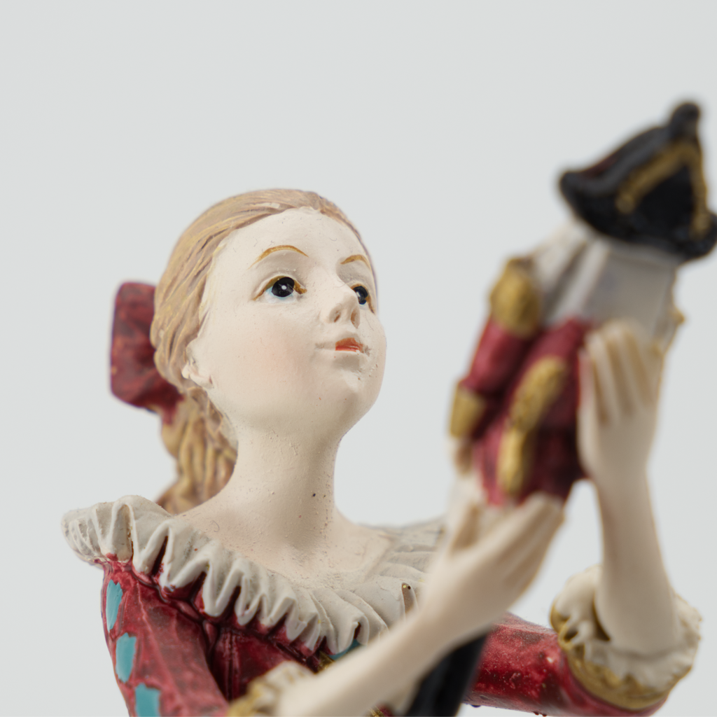 Cast in resin and painted by hand, featuring appliqué glitter for a touch of kitsch.