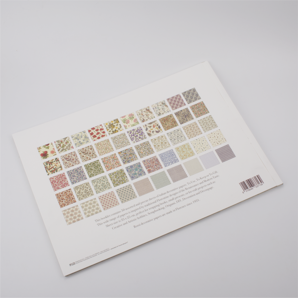 This tactile and decorative paper is crafted by Florentine stationers Rossi using a letterpress machine from the 1930s. The fifty different classic designs selected by Scriptum can be used for wrapping small presents, decoration or craft projects.