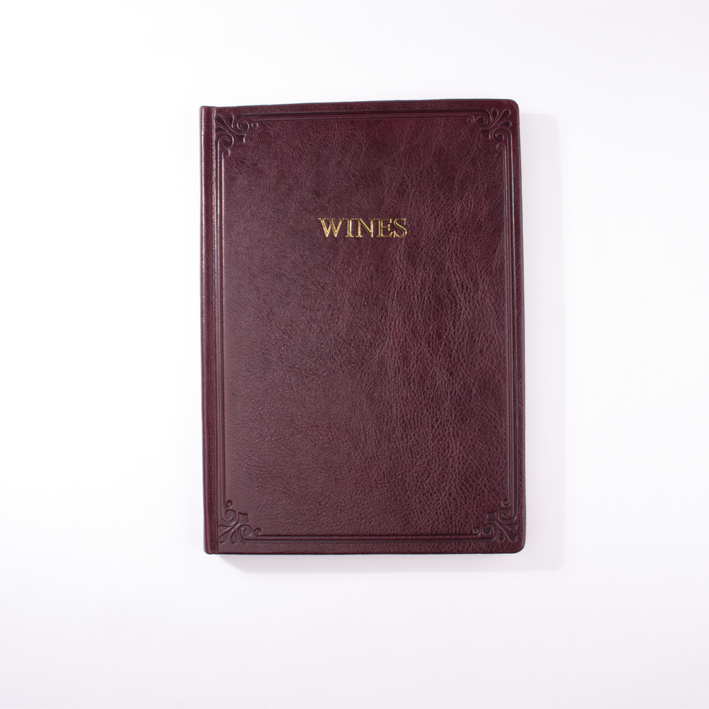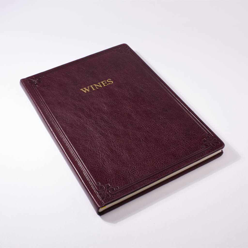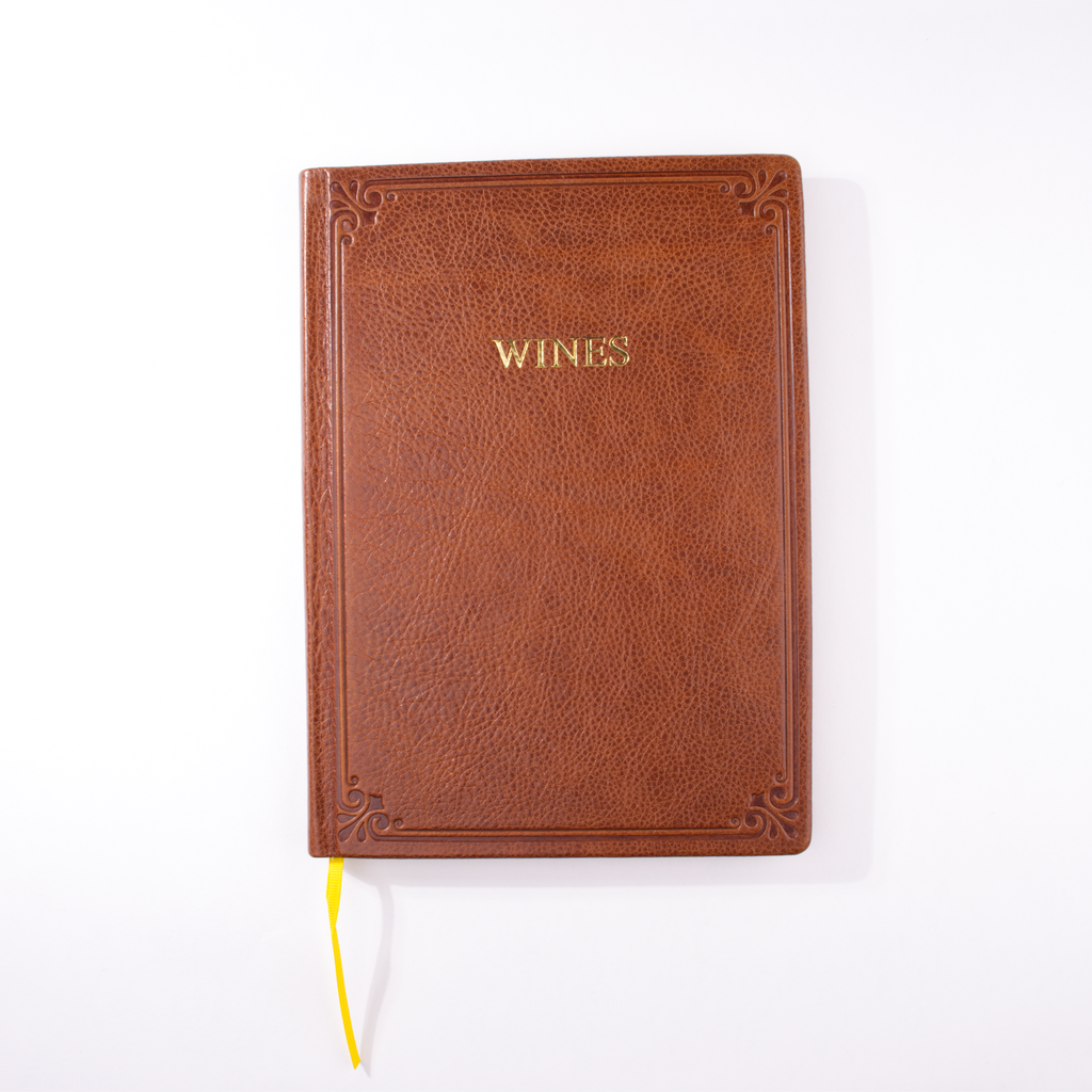 'WINES' is boldly embossed on the face of the book, with ample space for personalisation.