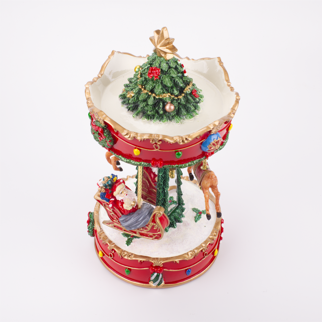 A charming musical automaton that plays a festive tune while the Merry-go-round rotates and the figures are reflected in the mirrored surfaces.