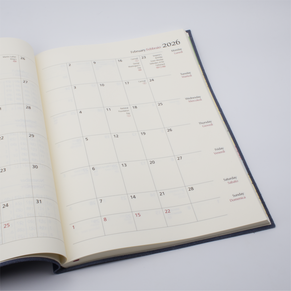 Our softbound Scriptum Desk Diary is gold embossed on hard-wearing natural leather and is available in three sizes.